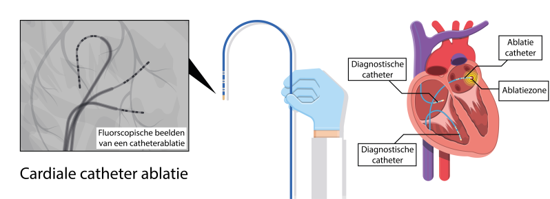 Een ablatie is een interventie die wordt uitgevoerd om bepaalde hartritmestoornissen te behandelen. Hierbij wordt de hartritmestoornis als het ware wegbrand door kleine littekens te maken op de plaats die de hartritmestoornis veroorzaakt. Het wegbranden gebeurd door radiofrequentiegolven, laser of bevriezen. De ablatie verloopt op dezelfde manier als het elektrofysiologisch onderzoek, namelijk via een buisje in de lies.