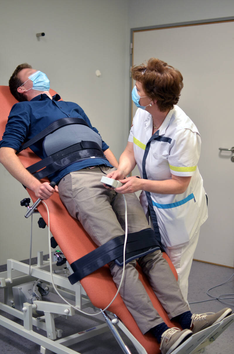 Voor het onderzoek dient u 1 uur nuchter te zijn, zo u suikerziekte zou hebben meldt u dit best vooraf. De test gebeurt op de raadpleging. Er wordt een bloeddrukmeter en ECG registratie aangelegd en u wordt gefixeerd op de tafel. Deze test wordt uitgevoerd op een speciale tafel die in een helling van 70° gebracht wordt. U blijft nadien staan en op regelmatige basis wordt de bloeddruk genomen. Uw hartritme wordt continu gevolgd. De verpleging blijft gedurende de hele test bij u. Bij ontwikkeling van symptomen van flauwte en/of lage bloeddruk wordt de tafel direct horizontaal gebracht. De klachten beteren meestal binnen de 5 minuten. Indien er geen symptomen ontstaan na 30 minuten is de test negatief.