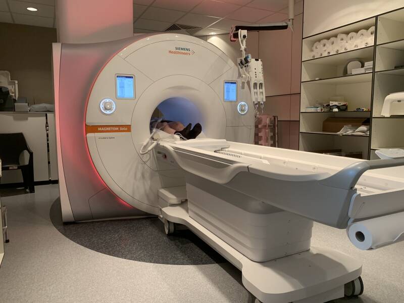 Het onderzoek vindt plaats op de dienst radiologie. U mag gewoon eten en drinken tenzij uw arts anders voorschrijft. U mag geen metalen voorwerpen dragen, zoals brillen, sieraden, piercings, beugels en metalen gebitsprotheses. U meldt zich op de dag van uw afspraak tijdig aan met uw identiteitskaart aan de inschrijvingskiosk in de inkomhal van het ziekenhuis. Vervolgens meldt u zich aan bij het secretariaat van de Radiologie (routenummer 68). Net voor het onderzoek krijgt u elektrodes op de borstkas gekleefd om uw hartslag te kunnen op volgen, vergelijkbaar met een klassiek elektrocardiogram. Er wordt ook een infuus geplaatst. Tijdens het onderzoek ligt u 30 tot 60 minuten stil op een tafel die in de smalle tunnel geschoven wordt. Het deel van uw lichaam dat gescand wordt ligt in het midden van de tunnel. Tijdens het onderzoek hoort u harde ratelende geluiden. U krijgt een hoofdtelefoon op zodat u aanwijzingen van de radioloog kan opvolgen.